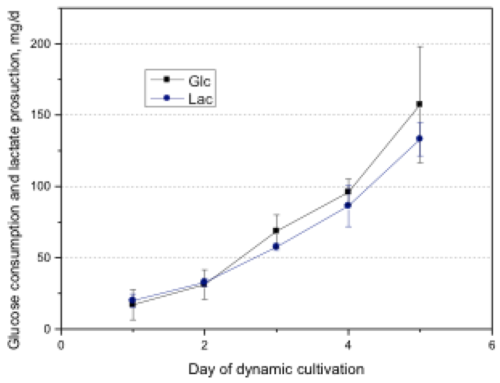 3.3. Cell Expansion in the Z®RP 2000 H Bioreactor