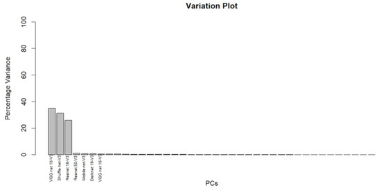 The principal component analysis is employed to select the most significant features that represent the four classes. Depending on a 95% variance among features, the most independent features are selected. As shown in the corresponding Figure 5, three principal components describe most of the variability in the data. However, the rest features have low significance in class representation.