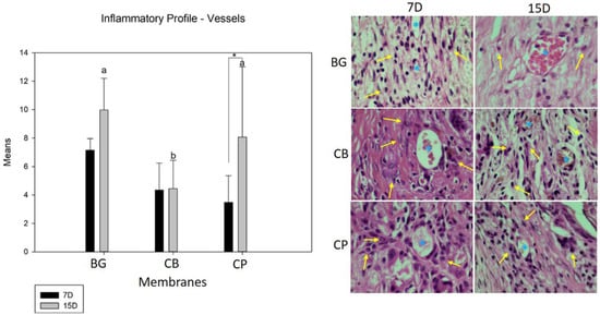 3.3. Inflammatory Profile (Cells and Blood Vessels)