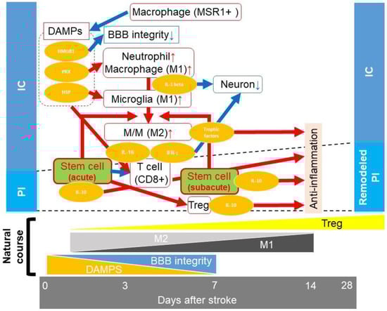 - Liesz, A.; Suri-Payer, E.; Veltkamp, C.; Doerr, H.; Sommer, C.; Rivest, S.; Giese, T.; Veltkamp, R. Regulatory T cells are key cerebroprotective immunomodulators in acute experimental stroke. Nat. Med. 2009, 15, 192–199. [Google Scholar] [CrossRef] [PubMed]