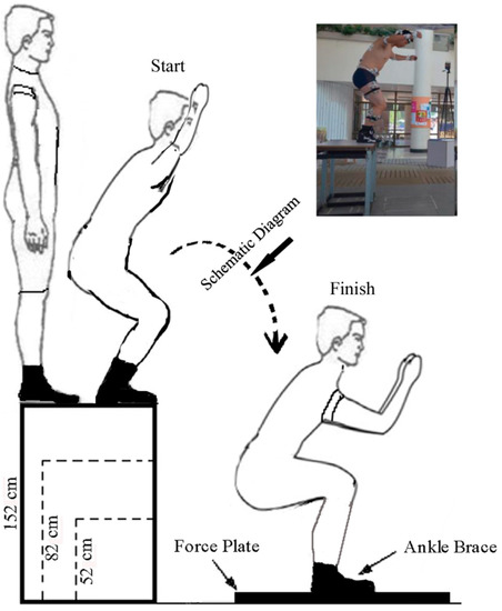 Landing on force plate from the different height of platform (subjects with ankle braces, boots, and no braces).