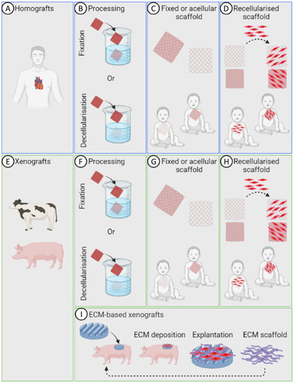 - Porzionato, A.; Stocco, E.; Barbon, S.; Grandi, F.; Macchi, V.; de Caro, R. Tissue-Engineered Grafts from Human Decellularized Extracellular Matrices: A Systematic Review and Future Perspectives. Int. J. Mol. Sci. 2018, 19, 4117. [Google Scholar] [CrossRef]