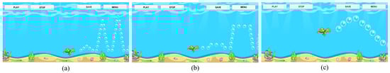 The main menu screen of the VR game enabled us to set some parameters, such as the participant’s ID, the duration of the exercise, the level of difficulty, and the exercise to be administered. A timer on the upper part of the screen measured the duration of the exercise, and at the end of each trial, a summary of the performance was also shown. Data regarding the exerted force, the maximum force, and the minimum force were received via UDP communication from the custom-designed Microsoft Visual Studio application.