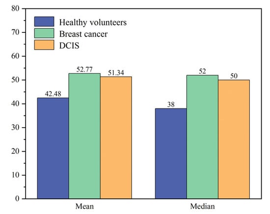 The age information of healthy volunteers, breast cancer and DCIS patients.