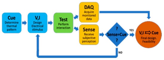 Thermal cues must be knowledgeably designed to guarantee perceptual distinction between them with a high reliability. Some basic ‘thermal icons’ have been created by several research groups by varying the direction of the stimuli (warming or cooling), the magnitude of the temperature change, and the rate of the temperature change (ROC). The ‘icons’ are visual expressions of the patterns of the temperature change vs. time. These various studies have aimed to address different emphases (e.g., compatibility with mobile environments, comparing different body areas, emotional influence, and outdoor vs. indoor performance, etc.). However, their main objective was to investigate the use of haptic thermal feedback for human–computer interactions (HCI) intended for determining the reliability of these patterns in terms of recognizability. The initial experiments conducted in [