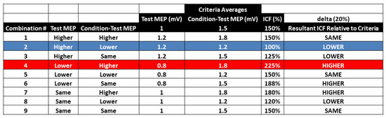 4.2. Effects of ITI on Test MEPs. Condition-Test MEPs, and ICF