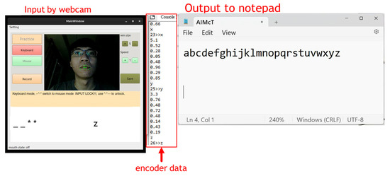 Figure 10 shows the time series and encoded data of a user typing “a” to “z” using AIMcT in keyboard mode through a webcam and output to Microsoft Notepad. In addition, AIMcT also has a mouse function, which can be switched to mouse mode through a mode switching code [29].