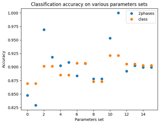 Two-phase training and “class” training were tested on the same hyperparameter sets with two-fold cross-validation. The mean accuracy over all tests differed only by a slight increase of 8‰ for the two-phase model. The best global results were surprisingly obtained without any image normalization with a perfect accuracy on one-fold cross-validation. On the hyperparameter sets with no normalization, the accuracy obtained with the joint two-phase model was 1.8% higher than that of the one-phase model trained on classification. Furthermore, the jointly trained two-phase model was only 1‰ higher than the jointly trained one-phase model. A potential improvement was achieved using the two-phase model on images without normalization. However, there was no significant improvement between the models trained with joint loss on one or two phases. This can be explained by all layers being retrained in the two-phase model and that the model can efficiently learn relevant features to both classification and segmentation.
