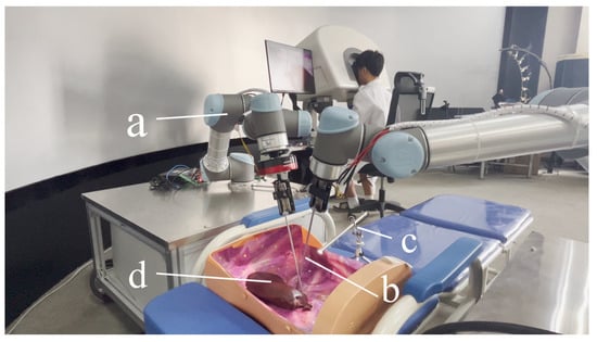 Given that most surgeons are accustomed to traditional minimally invasive surgery (MIS) methods, there is a significant adjustment period required for them to transition from conventional techniques to the current methods employed in surgical robot operations. Therefore, the learning curve for robotic minimally invasive surgery (RMIS) becomes notably steep. To alleviate the learning curve of controlling RMIS, researchers have developed incorporating advanced technologies such as three-dimensional displays, haptic feedback, and virtual reality/augmented reality (VR/AR) [,,,,,]. Currently, there is a substantial shortage of cadaveric resources in medical schools, which presents a major hindrance for surgeons seeking to undergo RMIS training. Therefore, VR/AR technology offers a promising solution to help surgeons enhance their RMIS skills without the need for cadavers [,].