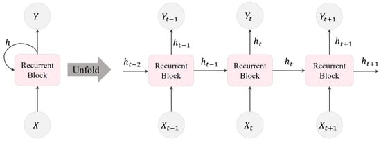 Recurrent Neural Networks (RNNs) [17,18] are a specialized type of feed-forward neural network designed for processing sequential data. An RNN consists of hidden recurrent units, where the output at a specific time step is calculated based on the output from the previous time step.