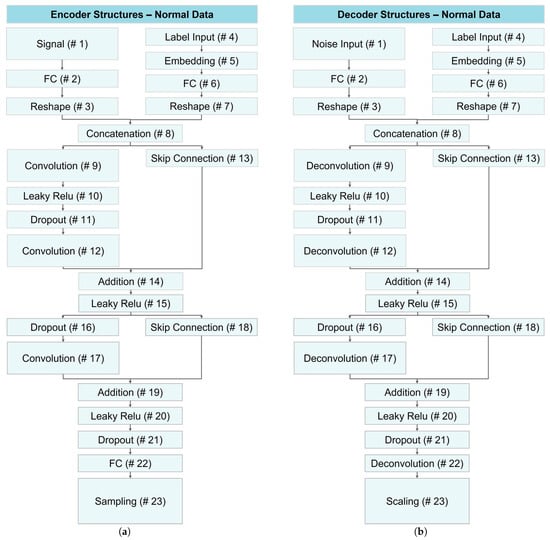 Moreover, deep learning-based generative models, such as variational autoencoders (VAEs), generative adversarial networks (GANs), and diffusion probabilistic models, have found extensive use in data augmentation [9]. Specifically, variational autoencoders (VAEs) and their extension, conditional variational autoencoders (CVAE), have been applied in research for anomaly detection, generating new sample data, and reconstructing input data by learning the fundamental features and structure of the training data. For instance, Liu [10] utilized VAE and CVAE structures for data augmentation in an intrusion detection system (IDS) to address data imbalances. The application of these networks significantly improved model performance metrics, specifically the Macro F1-score, by 5.32%. Moreover, CVAE proved to be effective in detecting structural anomalies in scanning transmission electron microscopy (STEM) images. By accurately reproducing input data and highlighting discrepancies in defect input data, CVAE was capable of automatically differentiating various point defect types [11].