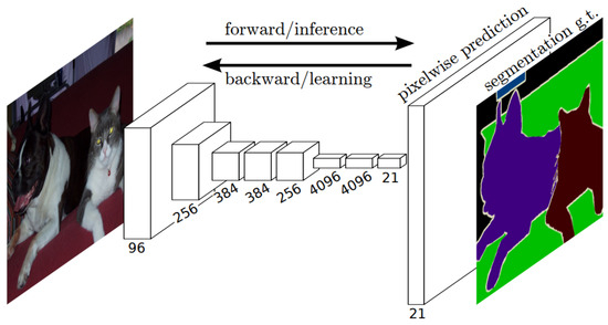 - Long, J.; Shelhamer, E.; Darrell, T. Fully Convolutional Networks for Semantic Segmentation. In Proceedings of the 2015 IEEE Conference on Computer Vision and Pattern Recognition (CVPR), June 2015; IEEE: Boston, MA, USA, 2015; pp. 3431–3440. [Google Scholar]
