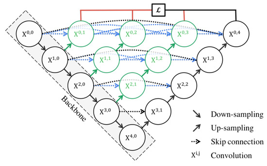 - Zhou, Z.; Siddiquee, M.M.R.; Tajbakhsh, N.; Liang, J. UNet++: A Nested U-Net Architecture for Medical Image Segmentation. In Proceedings of the Deep Learning in Medical Image Analysis and Multimodal Learning for Clinical Decision Support: 4th International Workshop, DLMIA 2018, and 8th International Workshop, ML-CDS 2018, Held in Conjunction with MICCAI 2018, Granada, Spain, 20 September 2018. [Google Scholar] [CrossRef]