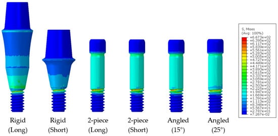- Rieger, M.R.; Adams, W.K.; Kinzel, G.L. A finite element survey of eleven endosseous implants. J. Prosthet. Dent. 1990, 63, 457–465. [Google Scholar] [CrossRef]