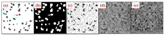 where f denotes the normalized 3D blobs image, J represents the unit matrix with all ones, H symbolizes the Hessian matrix, and indicates the principal minors of the Hessian matrix. We make the assumption that the blobs in f correspond to dark blobs in Equation (26) for consistency with other equations. It’s important to note that in [22], the calculation of blobness is based on the DoG transformed blobs image, whereas here, we use the normalized 3D blobs image without the DoG transformation. Consequently, the transformation of these dark blobs into bright blobs is achieved by .