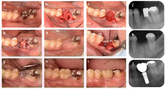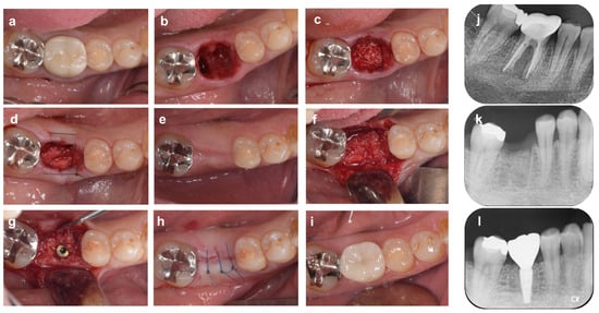 - Bartee, B.K. Extraction site reconstruction for alveolar ridge preservation. Part 2: Membrane-assisted surgical technique. J. Oral Implantol. 2001, 27, 194–197. [Google Scholar] [CrossRef]