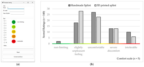 Rating: (a) visual demonstration from a computer application; (b) histograms from the ten-week comfort assessment obtained from the probands.
