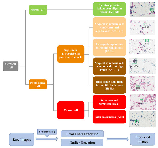 - Fang, M.; Lei, X.; Liao, B.; Wu, F.X. A Deep Neural Network for Cervical Cell Classification Based on Cytology Images. IEEE Access 2022, 10, 130968–130980. [Google Scholar] [CrossRef]