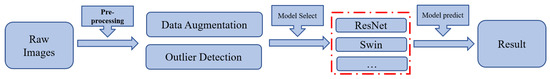 Traditional classification pipeline. The red boxes represent the integration of different models.