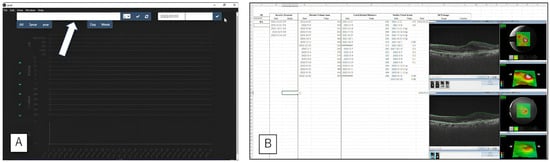 Screenshots of the AMD VIEWER and Manual Input Interface. (A) AMD VIEWER System (Note: the white arrow points to the ID input box.) (B) User Interface for Manual Data Entry (manually enter the necessary numbers into the Excel spreadsheet and paste the images without resizing them using copy and paste).