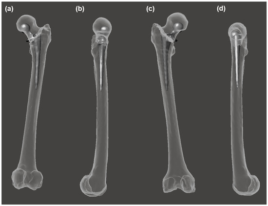 - Chethan, K.; Zuber, M.; Satish Shenoy, B.; Kini, C.R. Static structural analysis of different stem designs used in total hip arthroplasty using finite element method. Heliyon 2019, 5, e01767. [Google Scholar]