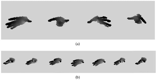 However, the accuracy of RGB-image-based methods is much lower than sensor-based methods because RGB images lack spatial information. In contrast, depth images additionally have distance information associated with each pixel in the image with respect to a camera. Depth images are 2.5D images; each pixel in the image with a non-zero depth value corresponds to a point on the surface of the object, as shown in Figure 1. Depth-image-based methods [14,15,16,17,18,19,20] can perform better than RGB-image-based methods in hand movement recognition. However, these methods are still limited in recognizing hand posture accurately.