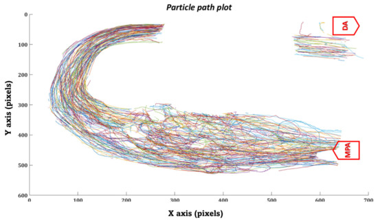Patient 2 (a) Trajectory of the particles (b) Flow field of the particles in the MPA conduit.