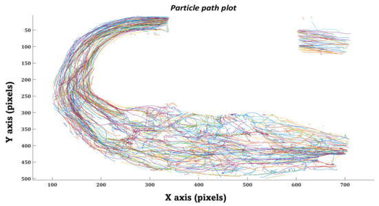 This study implemented a Lagrangian scheme to track these massless particles and measure PRT. After obtaining a converged flow field, the Lagrangian tracking scheme was activated, and particles were injected. Particles were assumed to be spherical and were released randomly in space and time for several cardiac cycles using an injection grid at the MPA inlet surface (Figure 13).