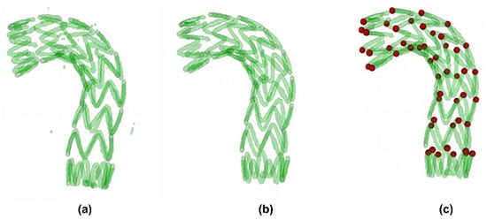However, up to now, these stent-related morphological parameters following TEVAR are all manually measured either on CTA images or reconstructed 3D models based on CTA images, which are not only time-consuming but error-prone. In addition, the measurement results may vary among individuals and the data accuracy decreases rapidly with increasing statistical size [18,20]. Rychla et al. [21] compared three different parameter measurement methods and stent selection schemes, and found significant differences in the parameter results obtained by the different “measurement methods” and “proposed schemes”. In addition, the manual measured morphological parameters are very limited and generally can only provide simplified stent information such as diameters, length and angles. It is impossible to quantitatively characterize the overall spatial torsion of the stent and important deformation features of stents [22,23].