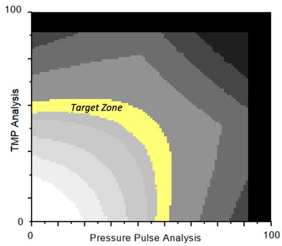 Substitution target matrix of AutoSub plus™. When the assessment is below the target zone, the substitution rate is increased to raise the stress in the membrane. When the assessment is above the target zone, the substitution rate is reduced to lower the stress in the membrane.