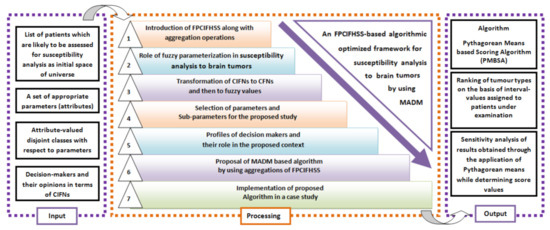 - A novel robust MADM-based algorithm i.e., Pythagorean Means-based Scoring Algorithm (PMBSA) is proposed by using set-based operations of FPCIFHSS to assess analyses of the susceptibility of patients to brain tumours. These steps of the proposed algorithms are easily understandable and free of computational complexities.