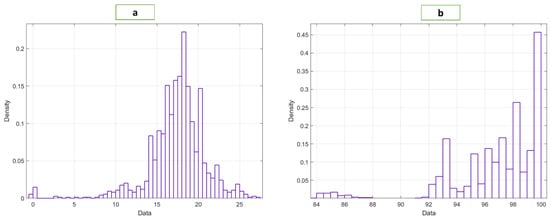 Distribution of the (a) RR and (b) SpO2 data.