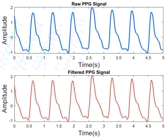 Raw PPG and filtered PPG signals.