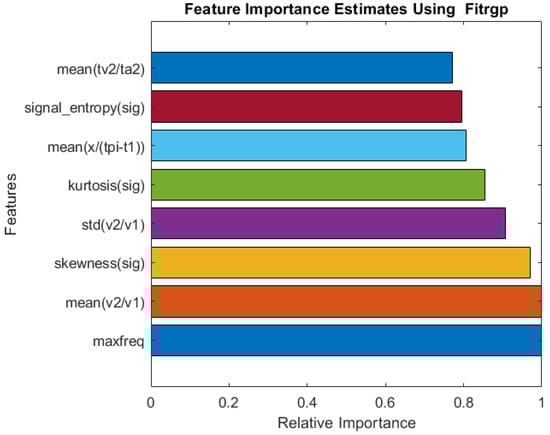 “FIT A Gaussian Process Regression Model (FITRGP)”: a Gaussian regression process model is trained, which returns the predictor weights that it used. The relevance of a feature is established by computing the exponential of the negative length scales that have been learned [24,25].