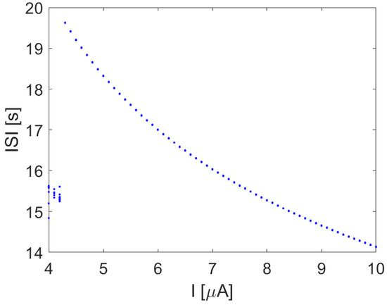 When the input current I is a constant value, a transition toward a spiking behavior occurs, as reported in Figure 8.