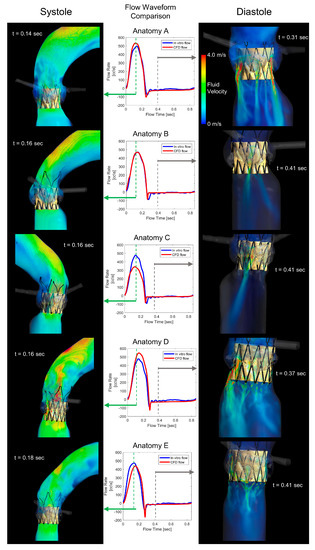 - Anam, S.B.; Kovarovic, B.J.; Ghosh, R.P.; Bianchi, M.; Hamdan, A.; Haj-Ali, R.; Bluestein, D. Validating In Silico and In Vitro Patient-Specific Structural and Flow Models with Transcatheter Bicuspid Aortic Valve Replacement Procedure. Cardiovasc. Eng. Technol. 2022, 13, 840–856. [Google Scholar] [CrossRef]