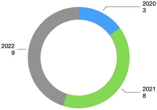 The publication interval considered papers published between 2020 and 2022. Figure 2 shows the number of selected papers for each year.