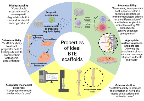 The properties of ideal bone tissue engineering scaffold. The image was created using Biorender.