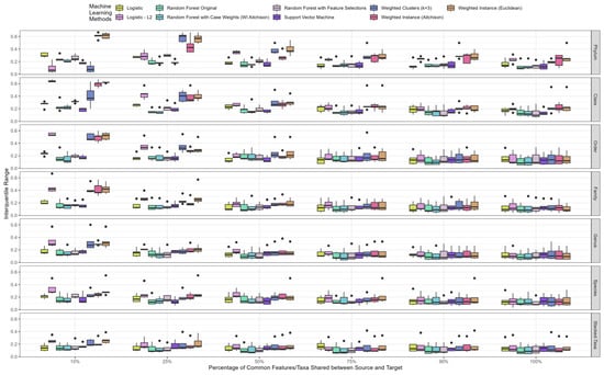 3.3. Impact of Percentage of Shared Features/Taxa between Source and Target