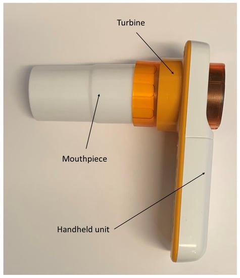 - Avdimiretz, N.; Wilson, D.; Grasemann, H. Comparison of a handheld turbine spirometer to conventional spirometry in children with cystic fibrosis. Pediatr. Pulmonol. 2020, 55, 1394–1399. [Google Scholar] [CrossRef]