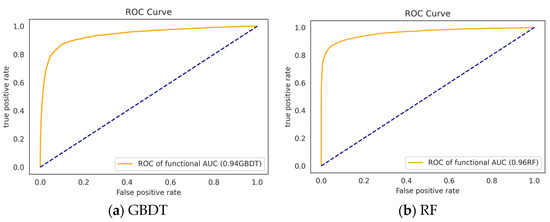 Table 3 summarizes the study’s findings and presents each model’s performance. The proposed approach demonstrated the best predictive performance. As shown in Table 3 and Table S2, each model’s appropriate number of features varied. Table 3 presents the best performance produced via various optimal feature sets. The accuracy of mRMR + GINI paired with GBDT was 95.19%, which was 5.53% higher than the traditional GBDT. RF (with Relief F + GINI for feature selection) produced an accuracy of 95.13%, 5.08% higher than the conventional RF; similarly, LSTM (with Chi-Square + GINI), SVM (with Relief F), and LSTM (with Chi-Square) achieved accuracies of 82.56%, 90.39%, and 84%, respectively. These results were 0.53%, 9.11%, and 9.33% higher than their counterparts trained on the complete feature sets, as shown in Table 2.