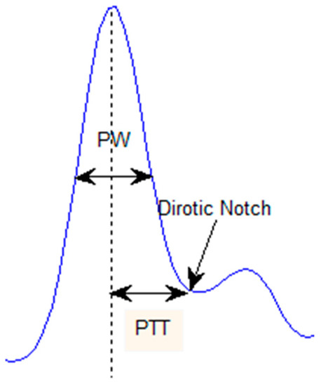 - Arza, A.; Lazaro, J.; Gil, E.; Laguna, P.; Aguilo, J.; Bailon, R. Pulse Transit Time and Pulse Width as Potential Measure for Estimating Beat-to-Beat Systolic and Diastolic Blood Pressure. Comput. Cardiol. 2013, 40, 887–890. [Google Scholar]