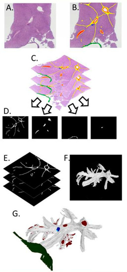 - Ekataksin, W.; Wake, K. Liver units in three dimensions: I. Organization of argyrophilic connective tissue skeleton in porcine liver with particular reference to the “compound hepatic lobule”. Am. J. Anat. 1991, 191, 113–153. [Google Scholar] [CrossRef]