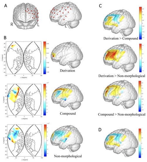 - Brooks, T.L.; Cid de Garcia, D. Evidence for morphological composition in compound words using MEG. Front. Hum. Neurosci. 2015, 9, 215. [Google Scholar] [CrossRef]