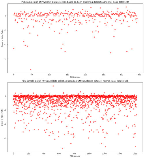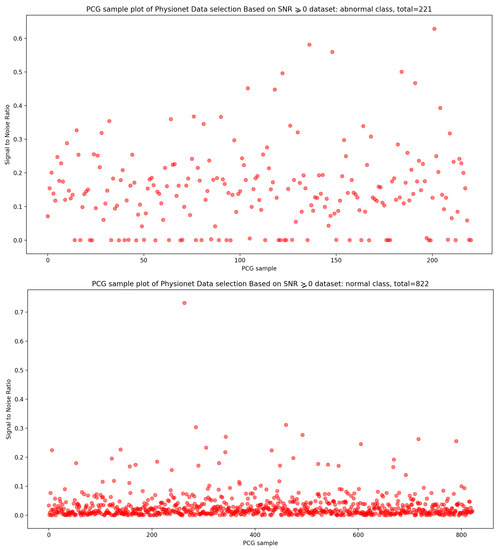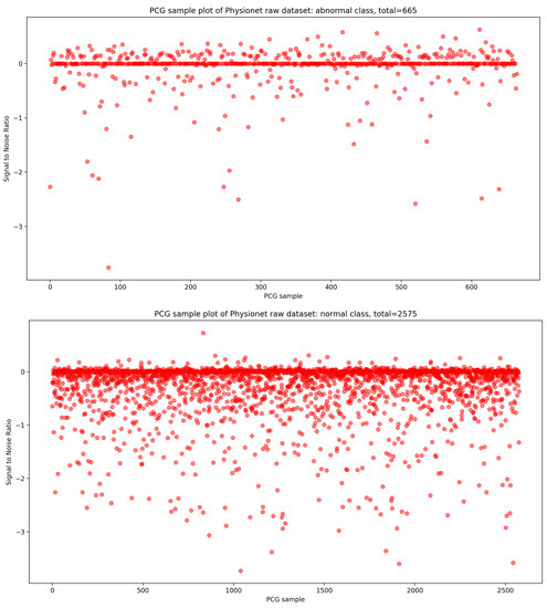 PCG sample distribution in function of signal-to-noise ratio of normal and abnormal classes.