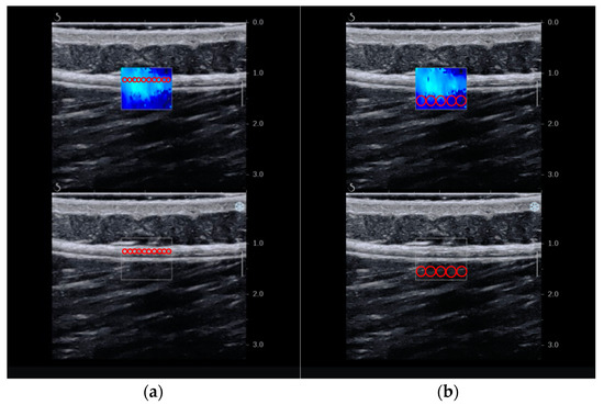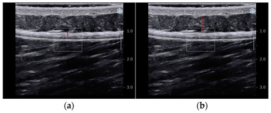 Figure 4. Thickness of the tissues in ultrasound images: (a) TLF and (b) subcutaneous tissue.