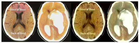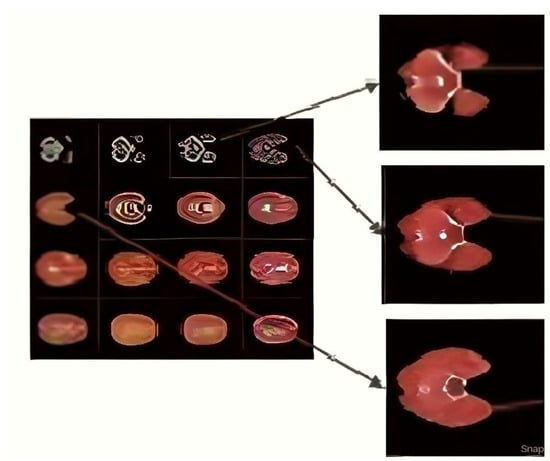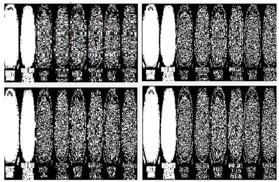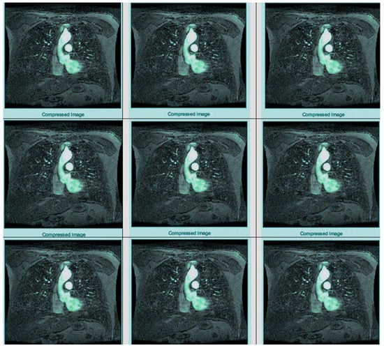 Figure 4. At each level, the images are refined, and the differences between levels are visible. The higher the number of coding levels of compression, the higher the image’s compression ratio and recovered energy. The compressed image is decompressed by wavelet packet reconstruction using the accounting matrix values of the decomposed image. Horizontal, vertical, diagonal, and proximity components are extracted from the decompressed image, and an IDWT is applied to recover the original image. A title image embedded in the patient data is visualized.