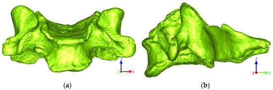 A 3D model was reconstructed using the marching cube method [25] to tessellate the faces of the model into a stereolithographic (STL) format. A highly dense point cloud was generated from the vertices of the tessellated model, which was used for superimposing in the next step.