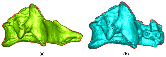 For the purpose of verifying and assessing the differences between surgical planning and outcomes, it is necessary to register the 3D models by superimposing medical imaging during planning and post-surgery [8]. Registration is also important and useful for post-surgery follow-up [9,10]. The most common approach has been the manual overlapping of corresponding anatomical features through observation [11]. This heavily relies on the reliability of experimental operators and their ability to conduct repeatable procedures; nevertheless, the labor-intensive and time-consuming nature of this method is a pitfall. The outcomes of the assessment may affect surgeons’ judgment in similar syndrome planning, resulting in changes in surgical outcomes.