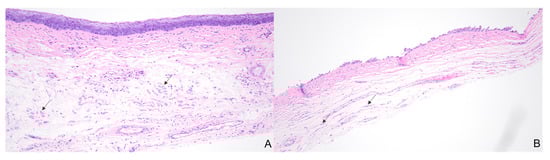 Vaginal canal tissues were fixed in 3.7% phosphate buffered formaldehyde for 24 h and then transferred to the LSU Pathology Core laboratory. Specimens were transferred through graded alcohol series and then into paraffin. Sections 5 μm in size were cut and processed, deparaffinized, and then stained for hematoxylin/eosin and mounted on slides. Photographs of specimens were taken, and the tissue layer thicknesses were evaluated using ImageJ (NIH, Bethesda, MD, USA, https://imagej.nih.gov/ij/) (accessed on 24 June 2022). Statistical differences between treatment groups were analyzed using the two-tailed Students’ t-test. A p-value of 0.05 or less was considered significant.